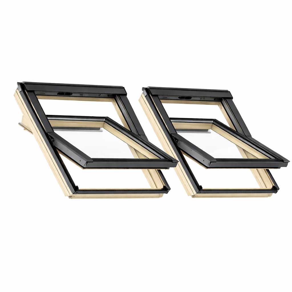 A csomag 2 db GLL tetőablakot és 1 db hőszigetelt iker burkolókeretet tartalmaz, amely a két ablak egymás mellé történő összeépítését teszi lehetővé.